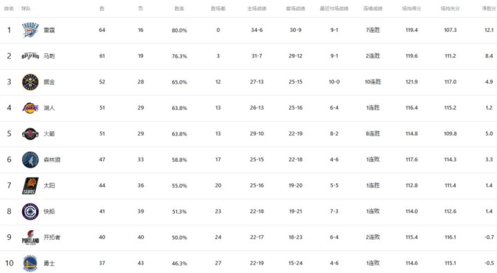 目前湖人以51胜29负位列西部第四,与第五的火箭战绩打平,落后第三的掘金1个胜场,还剩两场常规赛要打均在主场作战,对手分别是太阳和爵士,有望以全胜姿态为季后赛预热。