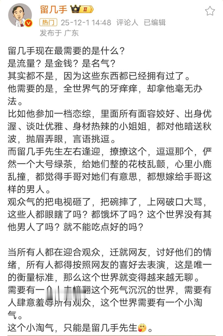 葛夕的沉默策略强化独立人设,而留几手的"破防"被视为对失去情感掌控权的焦虑。舆论差异化评判实为对"女性挣脱束缚"的价值投票。如网友所言:"当葛夕打破'离不开我'的幻想,留几手们只能经历追求不成再诋毁的破防循环"。