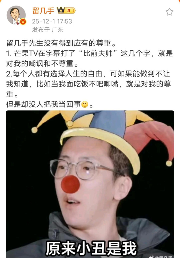 晚些时候他再发文控诉节目组"比前夫帅"字幕是对其"不尊重",称"没人把我当回事",却被翻出3月曾拒绝综艺邀约称"找了,我不想去",暴露人设矛盾。