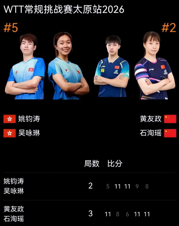 一开始黄友政和石洵瑶先赢了一局,本以为能顺顺利利拿下,没想到被对手连追两局反超了比分。