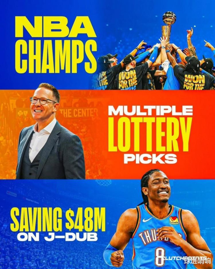 更加夸张的是,这支雷霆队不仅领跑本赛季的冠军争夺战,大概率顺利完成卫冕,更是在26年这个公认的选秀大年中手握4枚首轮签,其中还包括快船队的无保护首轮。