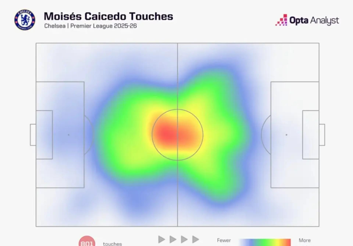 凯塞多在本赛季夺回球权方面展现出恐怖统治力。尽管切尔西多数时间掌控球权,他仍完成了26次拦截——比联赛其他任何球员多出6次。他坐镇防线前沿瓦解进攻,已打入3粒联赛进球(超过其过往完整赛季数据),并贡献多次助攻。当切尔西需要稳固防守并发动快速反击时,凯塞多就是掌控局面的核心引擎。